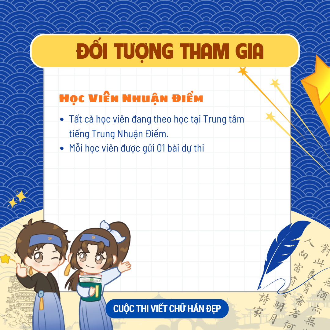 Trung tâm Tiếng Trung Nhuận Điềm rất mong được chiêm ngưỡng tác phẩm của bạn trong mùa thi năm nay.