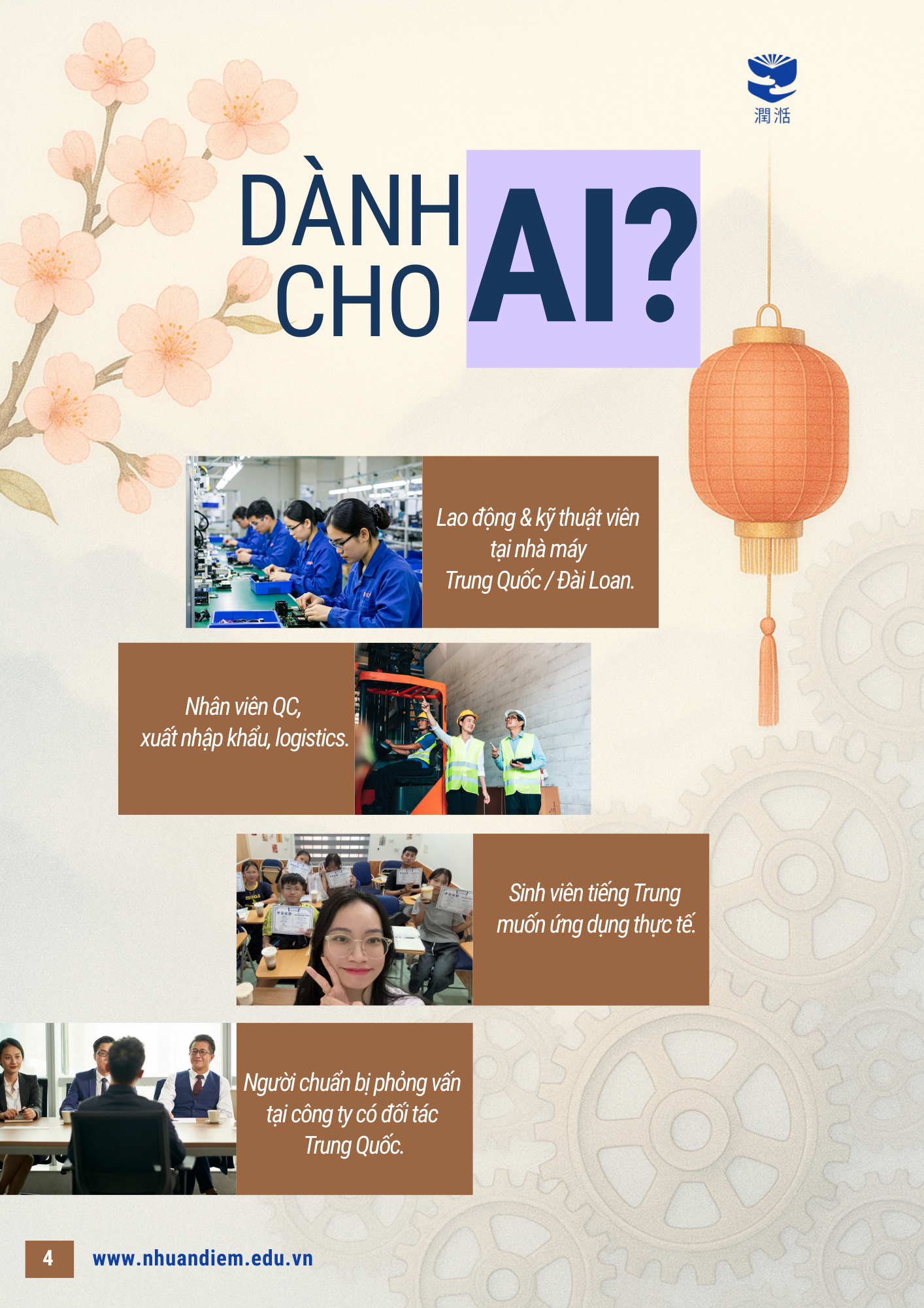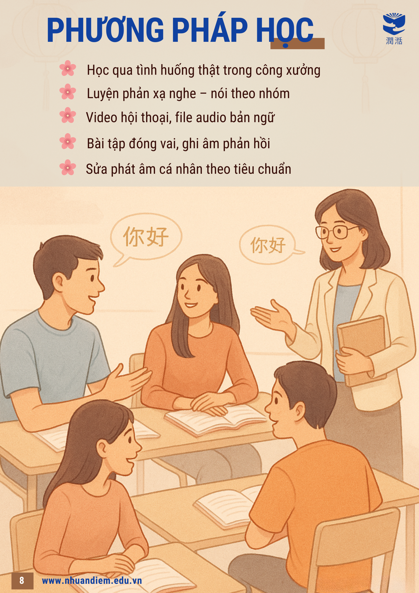 Đó chính là lý do Trung tâm Tiếng Trung Nhuận Điềm phát triển chương trình “Tiếng Trung Giao Tiếp Công Xưởng”, nhằm giúp học viên sử dụng ngôn ngữ đúng ngữ cảnh, phản xạ nhanh, tự tin giao tiếp thật trong mọi tình huống tại nhà máy.